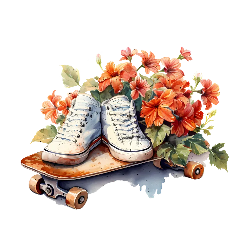 See allThis unique DTF transfer features a stylish pair of white high-top sneakers resting on a classic skateboard, beautifully framed by lush orange flowers and vibrant green foliage. Rendered in a captivating watercolor style with subtle distressed details on the shoes, this design blends urban street culture with natural beauty. It's a ready to press transfer that brings a fresh, artistic, and cool vibe to any garment, perfect for expressing individuality and a love for both skate life and floral aesthetics. Ideal for skaters, fashion-forward teens, young adults, or anyone who appreciates a blend of sporty and natural elements in their wardrobe. This versatile design is perfect for casual wear, skate park outings, spring and summer events, or as a thoughtful gift for birthdays, back-to-school, or just because. Create custom apparel for friends, family, or your own boutique with this eye-catching heat transfer design. Our premium iron on transfer is designed for easy application across a wide range of fabrics, including cotton, polyester, and various blends. For best results, use a heat press at 300-325°F for 15 seconds with medium pressure, then peel cold. A household iron can also be used with careful, even pressure. Enjoy the convenience of a ready to press design that requires no weeding or complex layering, making custom apparel creation simple and fun. Experience superior quality with this apparel transfer, featuring incredibly vibrant colors that pop and sharp details that last. Our DTF transfers are crafted from durable, crack-resistant film, ensuring your designs withstand numerous washes without fading or peeling. The soft-touch finish provides maximum comfort, while the strong adhesive guarantees a professional, long-lasting bond to your chosen garment. Elevate your creations with dtf.market's exceptional heat press transfers.