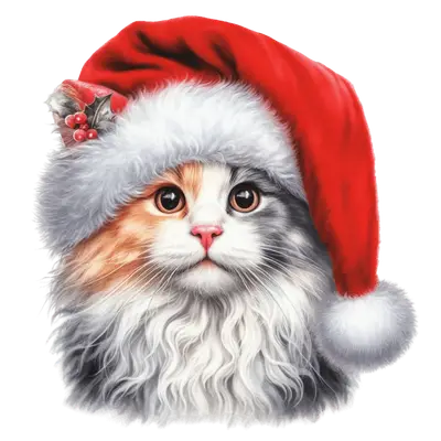 Fluffy Calico Cat with Santa Hat Christmas DTF Transfer