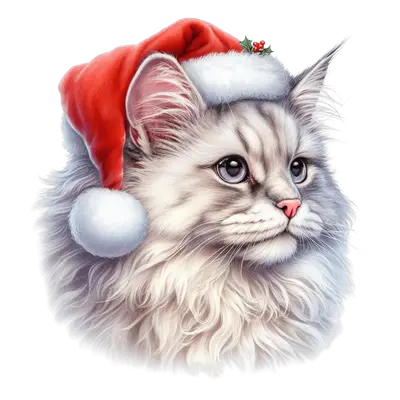 Fluffy Cat in Santa Hat DTF Transfer - Christmas Holiday Pet Design