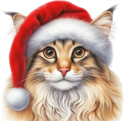 Fluffy Christmas Cat DTF Transfer - Cute Santa Hat Kitten Iron On