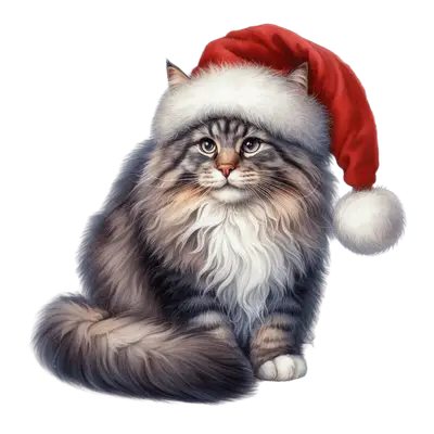 Fluffy Christmas Cat DTF Transfer - Ready to Press Santa Hat Feline