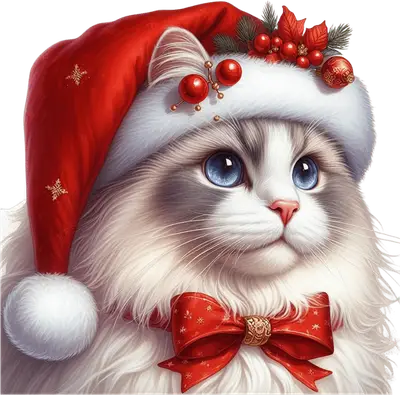 Fluffy Christmas Cat DTF Transfer | Santa Hat Feline Ready to Press