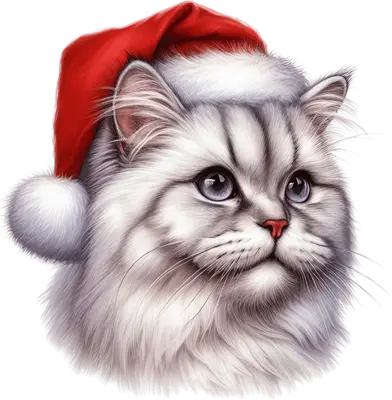 Fluffy Christmas Cat DTF Transfer - Santa Hat Kitten Iron On