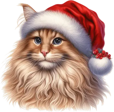 Fluffy Christmas Cat DTF Transfer with Santa Hat | Holiday Pet Apparel Design