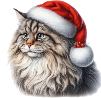 Fluffy Christmas Cat Santa Hat DTF Transfer