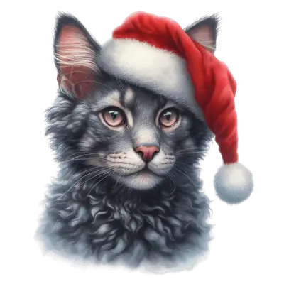 Fluffy Christmas Cat Santa Hat DTF Transfer | Ready to Press