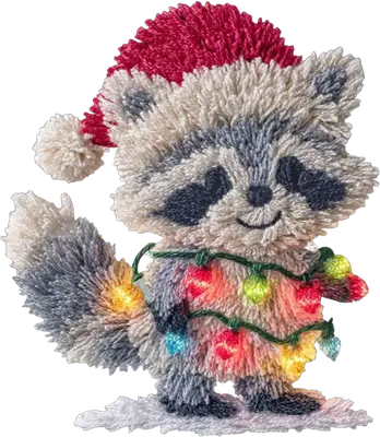 Fluffy Christmas Raccoon DTF Transfer | Santa Hat & Lights Design