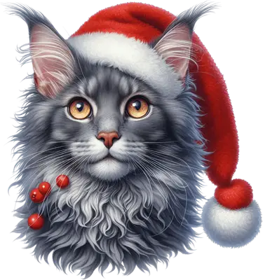 Fluffy Grey Cat Santa Hat DTF Transfer - Festive Christmas Design