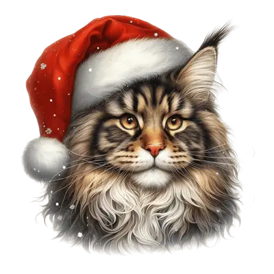 Fluffy Maine Coon Cat Santa Hat DTF Transfer | Christmas Pet Design