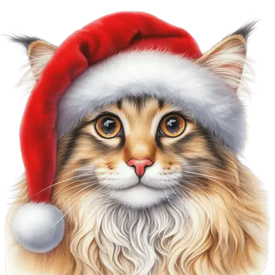 Fluffy Maine Coon Santa Cat DTF Transfer | Christmas Holiday Pet Ready to Press