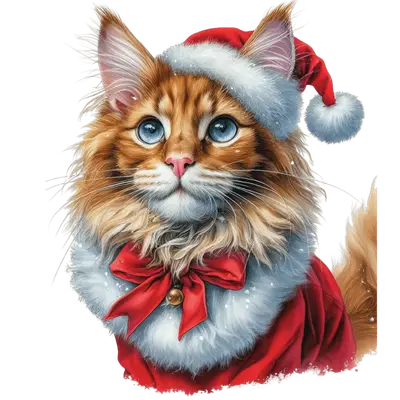 Fluffy Santa Cat DTF Transfer | Adorable Christmas Kitten Ready to Press