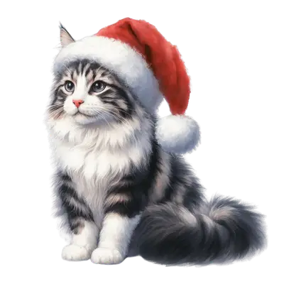 Fluffy Santa Cat DTF Transfer - Christmas Kitten Ready to Press