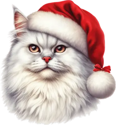 Fluffy White Cat Santa Hat DTF Transfer - Christmas Pet Apparel