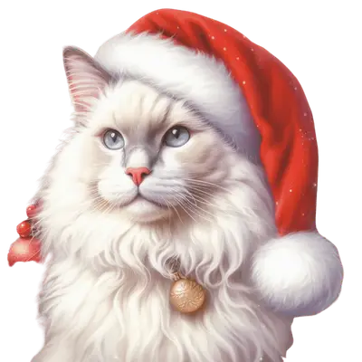 Fluffy White Cat Santa Hat DTF Transfer | Ready to Press Christmas Design