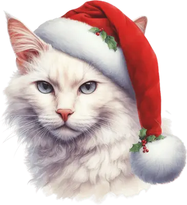Fluffy White Christmas Cat Santa Hat DTF Transfer