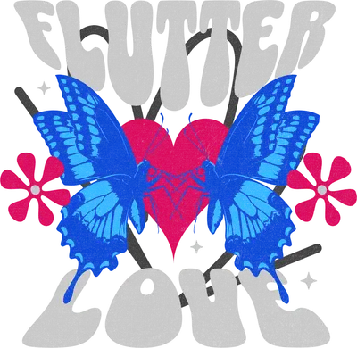 Embrace a groovy vibe with our 'Flutter Love' DTF transfer, featuring retro blue butterflies, a vibrant pink heart, whimsical flowers, and sparkling stars. The distressed grey text 'FLUTTER LOVE' in a bubbly, vintage font adds nostalgic appeal. This unique ready to press design captures playful romance and free-spirited style for any garment or accessory. This captivating heat transfer design is ideal for romantics, vintage style enthusiasts, and nature lovers. It makes a thoughtful iron on transfer gift for anniversaries, Valentine's Day, birthdays, or simply to show affection. Small businesses, Etsy shop owners, and DIY crafters will find this versatile design perfect for creating unique merchandise or personalizing apparel for spring and summer. Applying this heat press transfer is a breeze, perfect for a professional heat press or household iron. It adheres seamlessly to cotton, polyester, blends, and nylon. Press at 300-325°F for 15 seconds. No weeding required—just peel and press! Create stunning custom t-shirts, hoodies, tote bags, pillow covers, or denim jackets. Wash inside out, tumble dry low for lasting durability. Experience superior quality with this vibrant ready to press transfer. It boasts full-color printing and exceptional fine detail. Our DTF transfers are crack-resistant, durable, and remarkably soft to the touch, unlike heavy vinyl. Each direct to film transfer is printed on premium DTF film with a robust adhesive backing, guaranteeing professional, long-lasting results for all your creations.