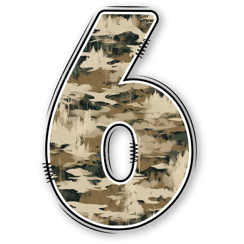 Forest Camo Number 6 DTF Transfer | Ready to Press Heat Design for Apparel