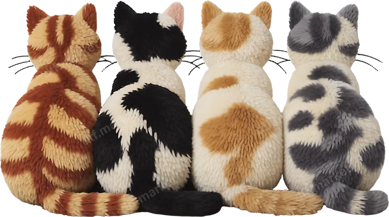 See allThis endearing DTF transfer features four adorable cats, each with unique fur patterns, viewed from behind. The design captures the charming textures of their fluffy coats, from classic tabby stripes to distinct calico patches in a warm, inviting palette. It’s a perfect ready to press design for anyone who adores felines and wants to add a touch of cozy charm to their apparel. Ideal for devoted cat owners, pet lovers, and anyone who appreciates the quiet companionship of our whiskered friends, this heat press transfer makes a thoughtful gift. It’s perfect for birthdays, Mother's Day, or simply as an everyday statement piece. Customize t-shirts, hoodies, and accessories to proudly display your love for cats. Applying this vibrant design is straightforward, suitable for cotton, polyester, and most fabric blends. For best results, use a heat press at 300-325°F for 15 seconds with medium pressure, then a cold peel. If using a household iron, ensure even, firm pressure. Enjoy the simplicity of an iron on decal that requires no weeding, saving you time and effort. Crafted with professional-grade DTF film, this t-shirt transfer delivers exceptional quality. The colors are incredibly vibrant, the print is crack-resistant, and the finish is soft to the touch, ensuring comfort and durability wash after wash. Transform ordinary garments into personalized masterpieces with this high-quality apparel transfer from dtf.market.