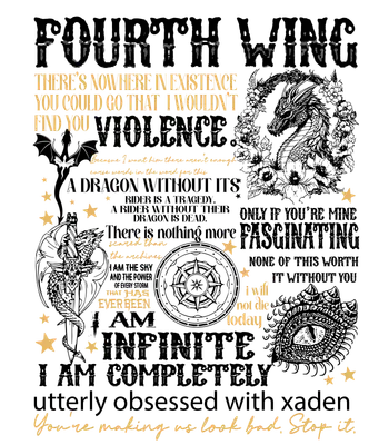 Fourth Wing DTF Transfer | Xaden Quotes & Dragon Rider Ready to Press Design