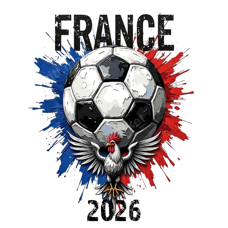 See allThis striking DTF transfer features "FRANCE" in a distressed font above a classic soccer ball, backed by vibrant blue and red paint splatters representing the French flag. A proud Gallic rooster with outstretched wings, a national symbol, sits below the ball, with "2026" marking the design's specific year. This ready to press transfer perfectly captures the spirit of French football, offering a dynamic graphic for fans and patriots. Perfect for passionate French football supporters, this design is ideal for major tournaments like the World Cup 2026, game day celebrations, or showing national pride year-round. It makes an excellent gift for soccer enthusiasts, players, or coaches, allowing them to personalize t-shirts, hoodies, and bags. Celebrate your team or heritage with this unique heat press transfer. Applying this heat press design is straightforward on cotton, polyester, and fabric blends. Use a heat press at 280-300°F for 6-10 seconds with medium pressure, then perform an instant hot peel for best results. This convenient iron on transfer eliminates the need for weeding, making customization quick and hassle-free. It can also be applied using a household iron for flexibility. Our professional DTF film ensures a high-quality apparel transfer with vibrant, crack-resistant colors and a soft-touch finish. This ready to press transfer provides excellent durability, resisting fading and peeling even after multiple washes. The strong adhesive guarantees a long-lasting bond to your garment, ensuring your custom creation maintains its striking appearance.