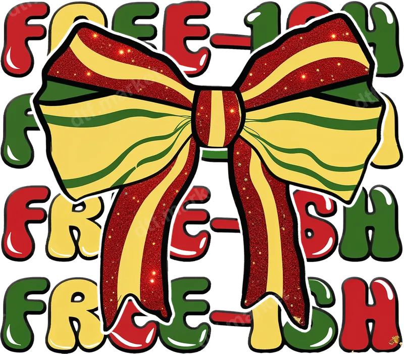 See allThis vibrant DTF transfer features a playful "FREE-ISH" slogan in a bubbly, retro font, adorned with a dazzling glitter-look Christmas bow in traditional red, gold, and green hues. It's the perfect ready to press design to add a touch of sarcastic holiday cheer to your wardrobe. The design's lively colors and sparkling details make it an eye-catching statement for any festive gathering. Ideal for those with a great sense of humor and a love for the holidays, this heat press transfer is perfect for Christmas parties, family gatherings, or just everyday wear throughout the festive season. It makes a fantastic custom gift for friends, family, or even yourself, adding a unique twist to a classic holiday look. Perfect for crafters looking to create funny Christmas apparel. Applying this high-quality iron on transfer is a breeze. Our direct to film transfer adheres beautifully to a wide range of fabrics, including cotton, polyester, and various blends. For best results, use a heat press at 300-325°F for 15 seconds with medium pressure, then cold peel. A household iron can also be used with careful application. No tedious weeding or layering required, making customization quick and effortless. Experience professional-grade results with our durable DTF transfers. These designs boast exceptional vibrancy, are crack-resistant, and maintain a wonderfully soft feel on your garment. Crafted with premium DTF film and a strong adhesive, your new favorite shirt design will stand up to countless washes, ensuring your festive humor lasts all season long.