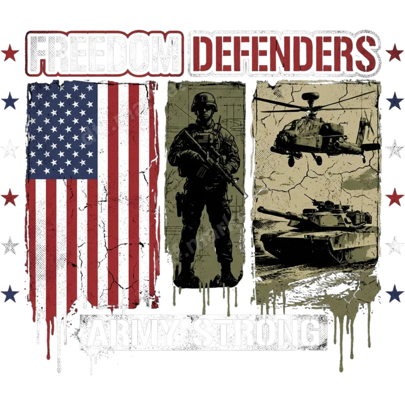 Freedom Defenders Army Strong DTF Transfer - Patriotic Military Design