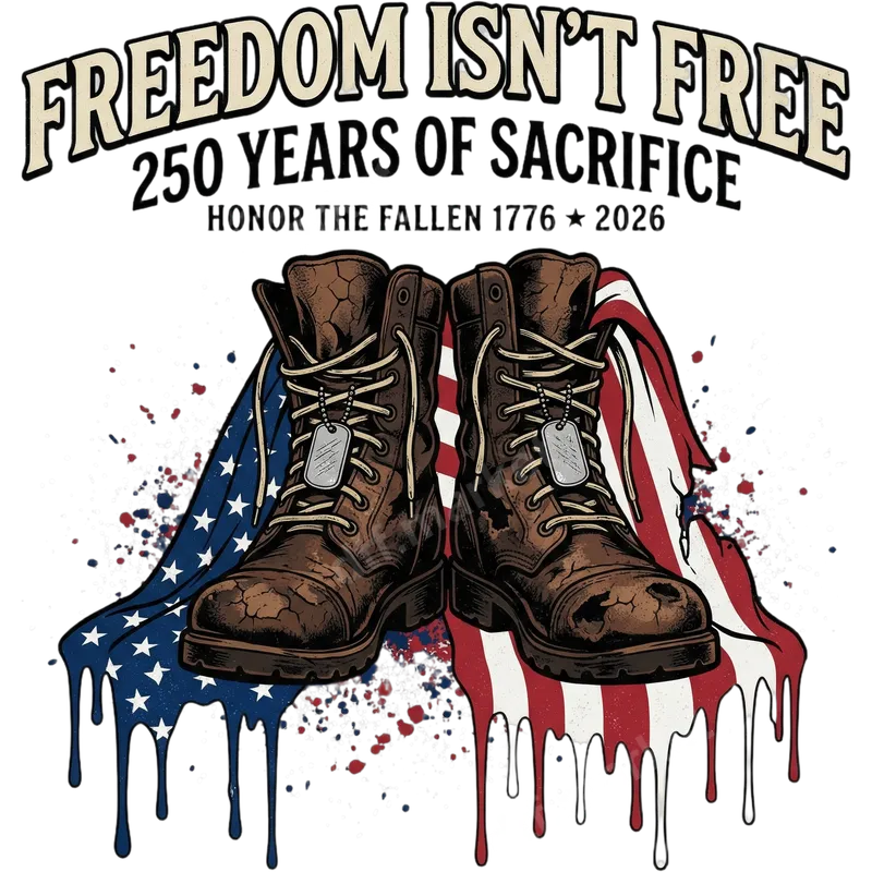 Freedom Isn't Free Military Boots DTF Transfer - Honor Fallen 1776-2026