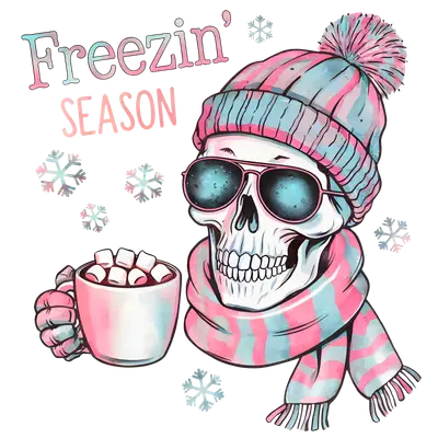 Freezin' Season Skeleton DTF Transfer | Winter Skull Hot Cocoa Beanie Design
