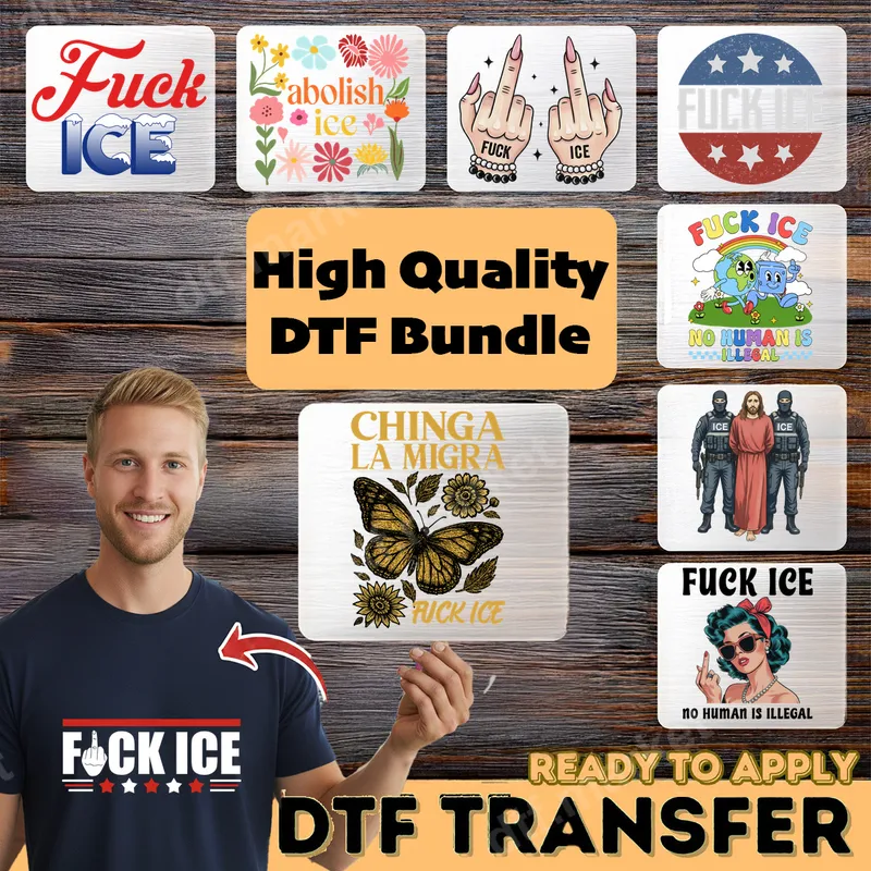See allThis powerful bundle features "Fuck ICE" and "Abolish ICE" DTF transfers, perfect for making a bold political statement. Each high-quality, ready to press direct to film transfer offers unique artistic interpretations, from striking typography and retro graphics to floral motifs and edgy illustrative styles. Messages like "No Human Is Illegal" and "Chinga La Migra" clearly express your stance on critical social justice issues. Ideal for activists, social justice advocates, and individuals passionate about immigration rights, this versatile t-shirt transfer bundle lets you wear your beliefs proudly. Perfect for protests, rallies, or expressing your views daily, these designs spark conversation and show solidarity. It also makes an impactful gift for like-minded friends or family members. Our professional-grade DTF transfers are incredibly easy to apply, compatible with cotton, polyester, and blends. Achieve a flawless finish using a heat press at 300-325°F for 15 seconds with medium pressure. For smaller projects, these heat press transfers can also be applied with a household iron. Enjoy the convenience of no weeding or masking, saving you time and effort. Experience superior quality with every apparel transfer. These designs boast vibrant colors, exceptional detail, and a soft-to-touch finish that won't crack, peel, or fade, ensuring your message endures wash after wash. Crafted from professional DTF film with strong adhesive, our heat press ready designs provide durability and a premium look for your custom garments.