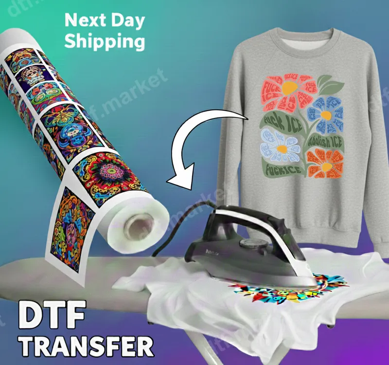 See allMake a powerful statement with our 'Fuck ICE Abolish ICE' floral DTF transfer. This eye-catching design features colorful flowers, with each petal intricately spelling out the phrases 'FUCK ICE' and 'ABOLISH ICE'. The vibrant, retro-inspired aesthetic combined with a strong political message makes this ready to press transfer a bold choice for personalizing your wardrobe. Elevate your activism and express your views with a high-quality, durable DTF transfer. This powerful shirt design is perfect for activists, social justice advocates, and anyone passionate about immigration reform. Ideal for wearing to protests, rallies, community events, or simply as an everyday statement piece. It also makes a thoughtful and impactful gift for like-minded friends or family members who share these important values. Our DTF transfers are incredibly versatile and easy to apply. They work seamlessly on a wide range of materials including 100% cotton, 100% polyester, cotton/poly blends, and even denim. Simply use a heat press at 300-325°F for 15 seconds with medium pressure, or apply with a household iron. These iron on transfers require no weeding, making application quick and hassle-free. Experience professional-grade quality with every apparel transfer. Our transfers are known for their vibrant colors, exceptional durability, and crack-resistant finish. The soft-touch feel ensures maximum comfort, and the strong adhesive on our premium DTF film guarantees your design will last wash after wash, maintaining its vividness and integrity.