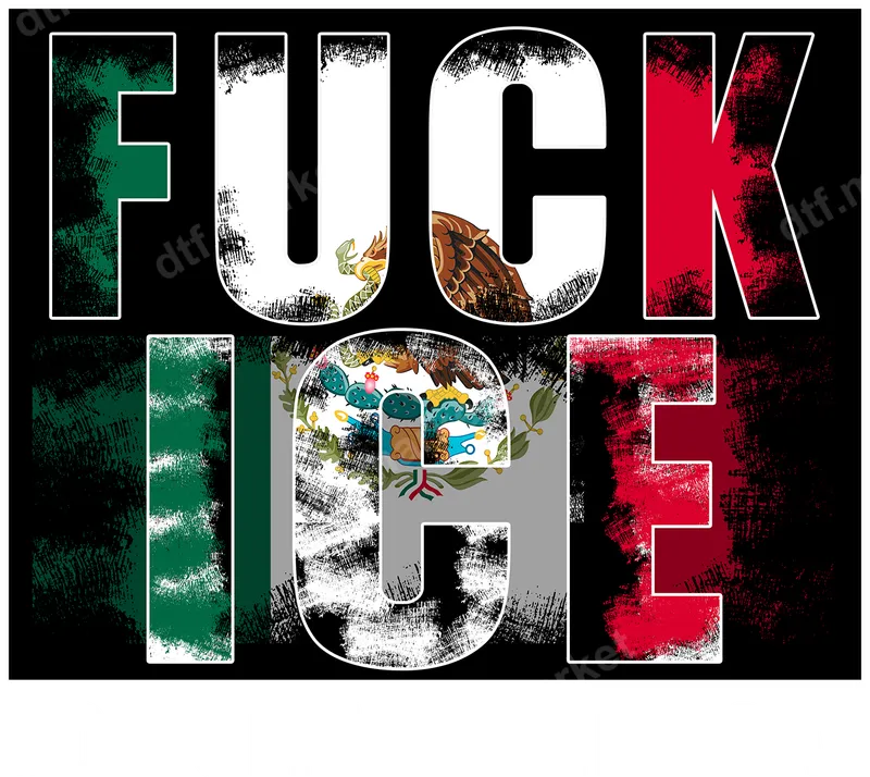 FUCK ICE Mexican Flag Distressed DTF Transfer - No Human Is Illegal