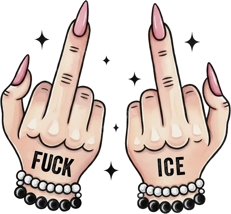 See allThis rebellious DTF transfer features two stylized hands, each flipping a middle finger, with 'FUCK' on one palm and 'ICE' on the other. Adorned with delicate pink nails and beaded bracelets, this provocative ready to press design sends a clear, sassy message. Sparkles add a touch of edgy flair to this bold graphic, making it a unique statement piece for your apparel. This explicit heat press transfer is ideal for individuals who aren't afraid to express their strong opinions and sense of humor. Perfect for political rallies, casual wear, or as a witty gift for friends who appreciate adult humor and sarcastic statements. Transform a plain t-shirt or hoodie into an instant conversation starter with this impactful iron on transfer. Applying this apparel transfer is simple and requires no weeding. It works beautifully on a wide variety of materials, including cotton, polyester, and their blends. For best results, use a heat press at 300-325°F for 15 seconds with medium pressure. You can also achieve great results with a household iron, following standard heat transfer instructions to create your custom design. Our DTF transfers are known for their exceptional quality, offering vibrant colors, crack-resistant durability, and a soft, flexible feel that seamlessly integrates with the fabric. Each heat press design is printed on professional-grade DTF film with a strong adhesive, ensuring your statement piece lasts through countless washes and wears. Create custom apparel that truly reflects your attitude.
