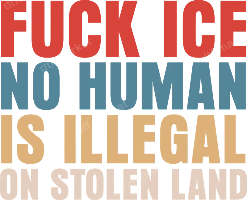 See allThis impactful DTF transfer features a powerful social justice message: "FUCK ICE NO HUMAN IS ILLEGAL ON STOLEN LAND" in bold, block letters across multiple lines. The design uses a distinctive palette of red, blue, and earthy tones to emphasize its urgent and unwavering stance. This ready to press design is perfect for anyone looking to make a clear, unapologetic statement about human rights and indigenous land rights. This powerful heat transfer is designed for activists, social justice advocates, and individuals who proudly stand against immigration detention and colonization. It’s ideal for protest events, rallies, community gatherings, or for daily wear to spark important conversations. It also makes a thought-provoking gift for friends and family committed to human rights and anti-colonial movements, offering a unique way to wear their convictions. Our high-quality DTF transfers are incredibly versatile and easy to apply. They are suitable for a wide range of fabrics, including 100% cotton, 100% polyester, and various cotton/poly blends. For best results, use a heat press at 300-325°F for 15 seconds with medium pressure. This iron on transfer requires no weeding, ensuring a smooth and quick application process directly onto your chosen garment. Experience professional-grade results with our durable and vibrant apparel transfer. Each design is printed on premium DTF film, engineered for superior color retention, crack resistance, and a soft-to-touch finish that feels like part of the fabric. The strong adhesive ensures your shirt design remains securely attached, maintaining its integrity and visual appeal even after multiple washes, offering a long-lasting way to express your message.