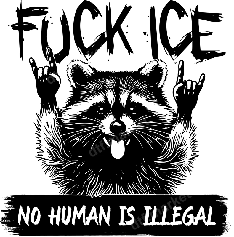 See allThis bold DTF transfer features a defiant raccoon flashing rock-and-roll signs, with the provocative phrases "FUCK ICE" and "NO HUMAN IS ILLEGAL" in a gritty, brush-stroke style. This unique direct to film transfer is perfect for those who want to make a strong political statement with an edgy, rebellious aesthetic. It comes ready to press, ensuring a straightforward application for your apparel projects. This powerful heat press design is ideal for activists, advocates for immigration rights, or anyone who believes in human dignity and seeks to express their views boldly. It makes an impactful statement for protests, rallies, community events, or simply as everyday wear to show your stance. A great gift for friends or family passionate about social justice and human rights. Applying this high-quality iron on transfer is simple and efficient. It works seamlessly on a wide range of fabrics, including cotton, polyester, and various blends. For best results, use a heat press at 300-325°F for 15 seconds with medium pressure, then cold peel. For smaller projects or home use, a household iron can also be used following careful instructions. No tedious weeding or layering required, making customization easy. Our apparel transfers are crafted using premium DTF film and inks, ensuring vibrant colors and a soft, smooth feel that won't crack or fade. The strong adhesive guarantees a long-lasting application, providing professional-grade results that stand up to countless washes. Elevate your wardrobe with a durable and impactful shirt design that truly speaks volumes.