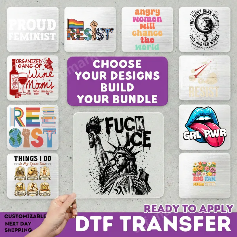 See allThis impactful DTF transfer features a stark, distressed black and white illustration of the iconic Statue of Liberty, defiantly holding her torch high, accompanied by the bold text "FUCK ICE." The grunge-inspired aesthetic gives this ready to press design an edgy, rebellious feel, perfect for those who want to express strong political views. This direct to film transfer combines powerful symbolism with an unequivocal message, making it a standout piece for any garment. This heat transfer is ideal for activists, protesters, and anyone passionate about human rights and social justice issues. It's perfect for rallies, demonstrations, political events, or as a powerful everyday statement piece. Gift this unique heat press design to friends, family, or fellow advocates who share your convictions and aren't afraid to speak their minds against injustice and oppressive systems. It’s more than just a shirt design; it’s a declaration. Our versatile heat press transfers are designed for easy application on a wide range of fabrics, including cotton, polyester, and various blends. Achieve professional results with a heat press set to 300-325°F for 15 seconds, using medium pressure. For smaller projects or home use, a household iron can also be used with care. Unlike traditional vinyl transfer, these require no weeding, simplifying your customization process significantly. Experience superior quality with our premium DTF transfers. Each iron on decal boasts vibrant, long-lasting colors that resist cracking and fading, even after multiple washes. The soft-touch feel ensures maximum comfort, integrating seamlessly into the fabric. Made with professional-grade DTF film and a strong adhesive, these apparel transfers guarantee a durable, high-quality finish for all your custom apparel projects.