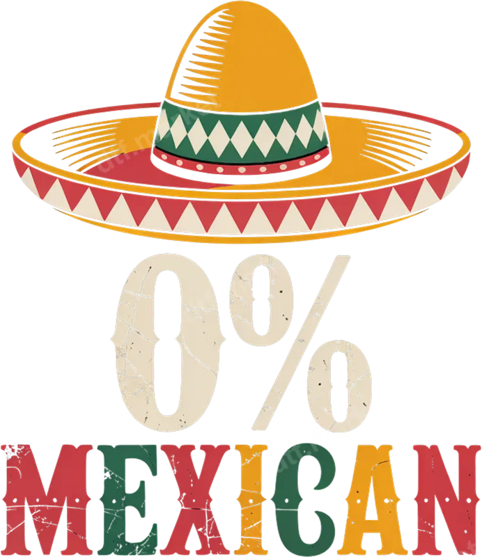 See allThis vibrant DTF transfer features a classic sombrero design paired with the humorous distressed text '0% MEXICAN.' The text 'MEXICAN' is rendered in the iconic red, yellow, and green colors, adding an authentic touch to this witty graphic. It's a perfect conversation starter, ideal for those who appreciate a lighthearted approach to cultural celebrations. This high-quality, ready to press design ensures you can easily create custom apparel with minimal effort. This unique heat press transfer is ideal for individuals who enjoy a good laugh, particularly during festivities like Cinco de Mayo, Taco Tuesdays, or any Mexican-themed party. It's a fantastic choice for friends, family, or even yourself to wear to casual gatherings, festivals, or just everyday fun. Perfect as a gag gift or for anyone who embraces humor and cultural appreciation, regardless of their heritage, making it a versatile iron on decal for various personalities. Applying this direct to film transfer is straightforward and hassle-free. Our heat press ready transfers work beautifully on a wide range of fabrics, including cotton, polyester, and various blends, ensuring versatility for your projects. For best results, use a heat press at 300-325°F for 15 seconds with medium pressure. No complicated weeding or layering is required; simply press and peel. A household iron can also be used with careful application for smaller projects. Experience professional-grade results with our premium apparel transfer. Each DTF transfer is crafted using durable, high-quality film that ensures vibrant colors and sharp details, designed to resist cracking and fading even after numerous washes. The soft-touch finish integrates seamlessly with your garment, providing a comfortable feel. Our strong adhesive guarantees your custom transfer will last, making your t-shirt transfer a long-lasting favorite.