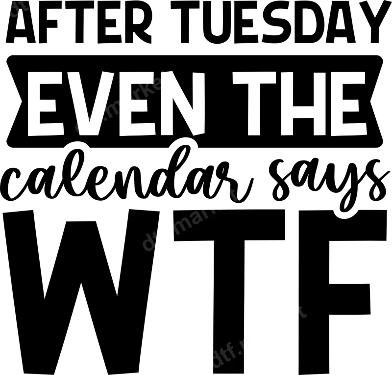 Funny After Tuesday Calendar Says WTF DTF Transfer
