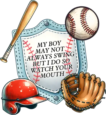 See allThis vibrant DTF transfer captures the spirit of baseball with a humorous twist, featuring a classic baseball bat, ball, mitt, and helmet surrounding a bold statement: "MY BOY MAY NOT ALWAYS SWING BUT I DO SO WATCH YOUR MOUTH." The design exudes a protective yet playful parent vibe, ready to press onto any garment. Its detailed, hand-drawn style with a slightly vintage feel makes it a standout piece for any baseball fan or proud sports parent. This iron on transfer is perfect for the devoted baseball mom, dad, or grandparent who loves to cheer from the stands and isn't afraid to speak their mind. It’s an ideal heat transfer design for creating unique gifts for Mother's Day, Father's Day, birthdays, or end-of-season team celebrations. Small t-shirt businesses and Etsy sellers specializing in sports apparel will find this a fantastic ready to press option for their inventory, offering a popular and relatable design. Applying this heat press transfer is a breeze on cotton, polyester, cotton-poly blends, and even nylon. Achieve professional results with a heat press (300-325°F for 15 seconds, medium pressure) or a household iron. No tedious weeding is required – simply peel and press! It's perfect for custom t-shirts, cozy hoodies, sturdy tote bags, or even a fun apron. For lasting durability, wash garments inside out and tumble dry on low heat. Experience superior quality with this ready to press transfer, featuring vibrant, full-color printing and exceptional fine detail. It offers a crack-resistant finish that's soft to the touch, avoiding the heavy, stiff feel often associated with vinyl transfers. Each direct to film transfer is printed on premium DTF film, boasting a strong adhesive backing to ensure a professional, long-lasting application every time you create custom apparel.