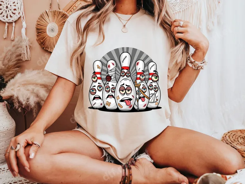 Funny Beat-Up Bowling Pins DTF Transfer | Ready to Press Heat Transfer
