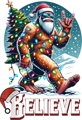 Funny Bigfoot Christmas Believe DTF Transfer Santa Hat Rock On