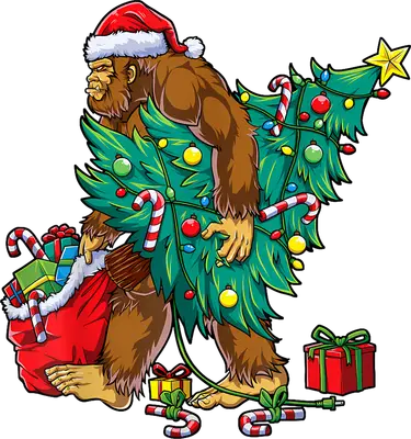 Funny Bigfoot Christmas Tree & Santa Sack DTF Transfer