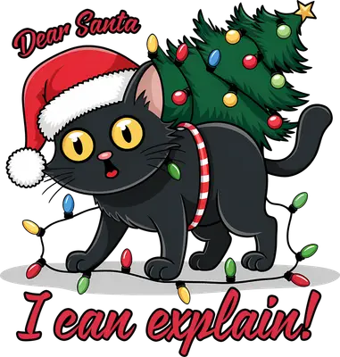 Funny Black Cat Christmas DTF Transfer - Dear Santa I Can Explain!