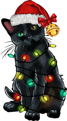 Funny Black Cat Christmas Lights DTF Transfer Ready to Press