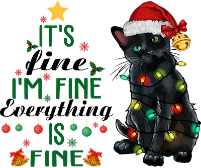 Funny Black Cat Christmas Lights "It's Fine" DTF Transfer