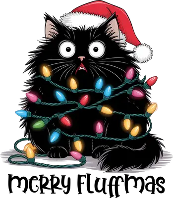 Funny Black Cat Christmas Lights Merry Fluffmas DTF Transfer