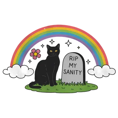 Funny Black Cat RIP My Sanity DTF Transfer | Rainbow Tombstone