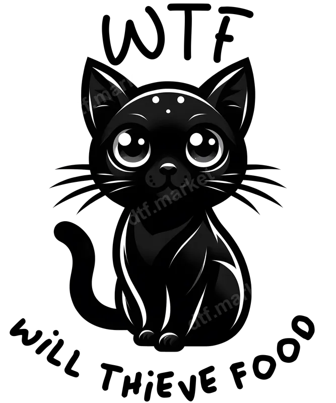 Funny Black Cat "WTF Will Thieve Food" DTF Transfer Design