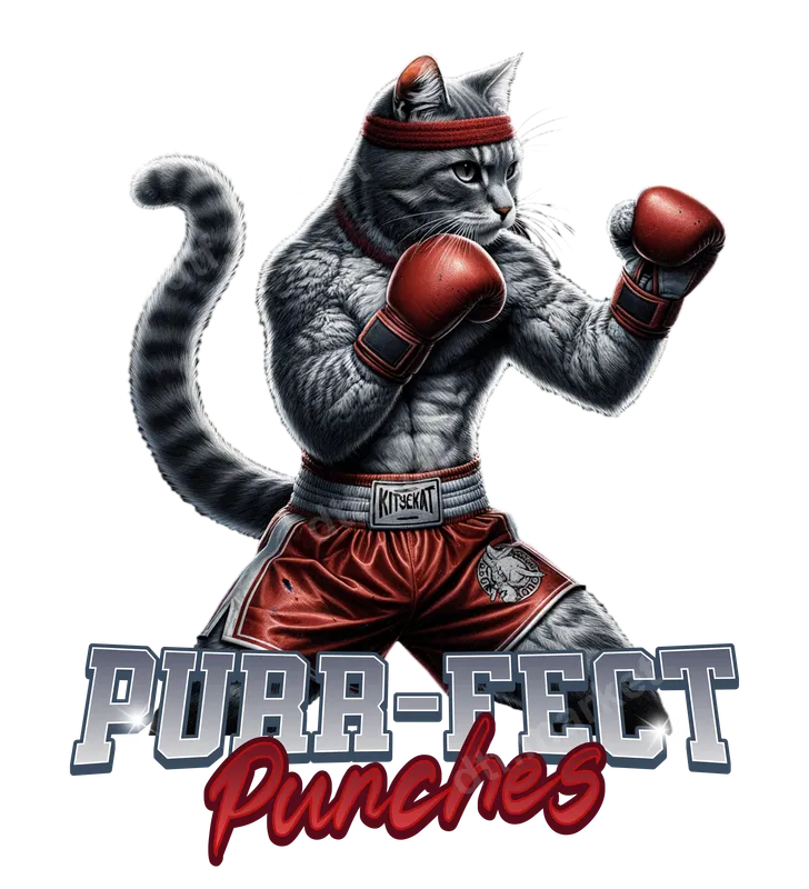 Funny Boxing Cat "Purr-fect Punches" DTF Transfer Design