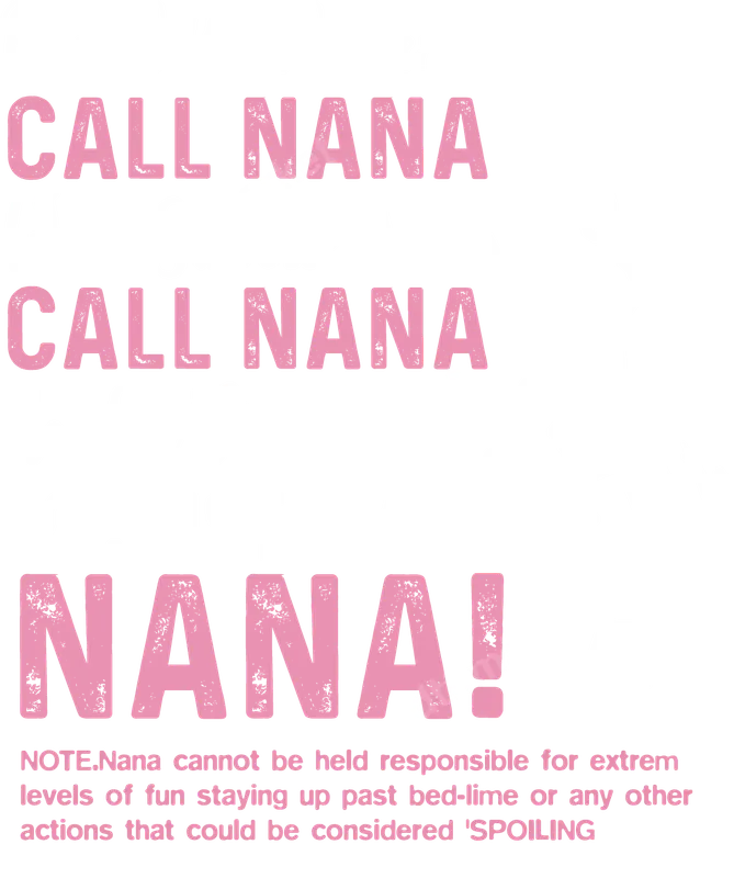 See allThis charming and humorous DTF transfer features the playful message "Parent Problems? Want Sweets? Need a Vacation? JUST. CALL NANA!" and a cheeky disclaimer about "extrem levels of fun" and "SPOILING." The design combines elegant script with bold, distressed pink lettering and a cute telephone graphic, capturing the loving yet mischievous spirit of a spoiling grandmother. This ready to press design is perfect for creating custom apparel celebrating the special bond with Nana. This delightful heat transfer is ideal for grandmothers, mothers, and anyone who loves being a Nana. It makes a fantastic gift for Mother's Day, birthdays, Christmas, or simply to show appreciation for the best grandparent. Perfect for family gatherings, vacations, or everyday wear, this shirt design resonates with anyone who understands the special role a Nana plays in a child's life, often bending rules with love and fun. Applying this high-quality iron on transfer is a breeze. It works beautifully on a wide range of fabrics including 100% cotton, polyester, cotton-poly blends, and tri-blends. For best results, use a heat press set to 300-325°F for 15 seconds with medium pressure, followed by a warm or cool peel. A household iron can also be used with firm, even pressure. Unlike vinyl transfer, there's no tedious weeding required, making custom garment creation quick and easy. Our direct to film transfer ensures a vibrant, durable, and professional-looking finish. The colors pop and the design is engineered to be crack-resistant, peel-resistant, and incredibly soft to the touch, seamlessly integrating with the fabric. Each heat press ready transfer is printed on premium DTF film with strong adhesive, guaranteeing long-lasting wear and countless compliments for your custom t-shirt or accessory.