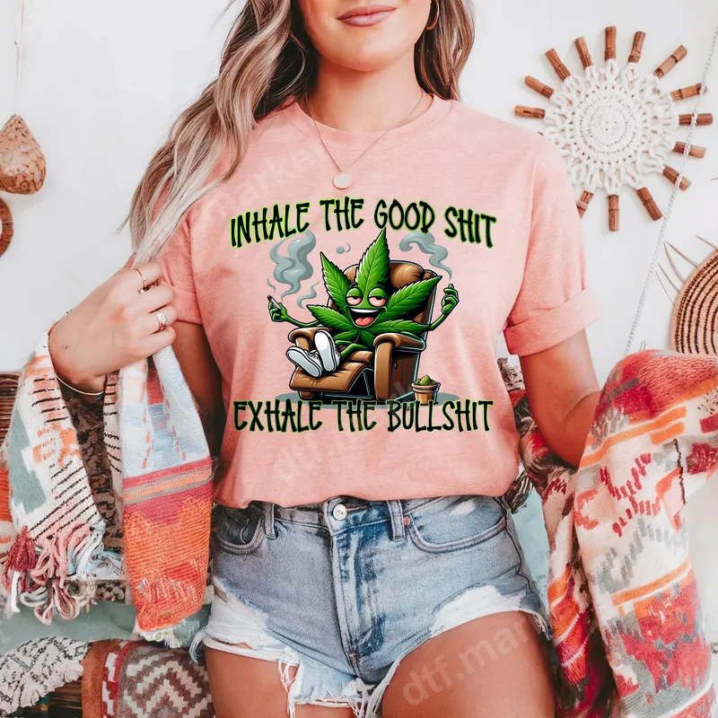Funny Cannabis Leaf 'Inhale The Good Shit' Ready to Press DTF Transfer